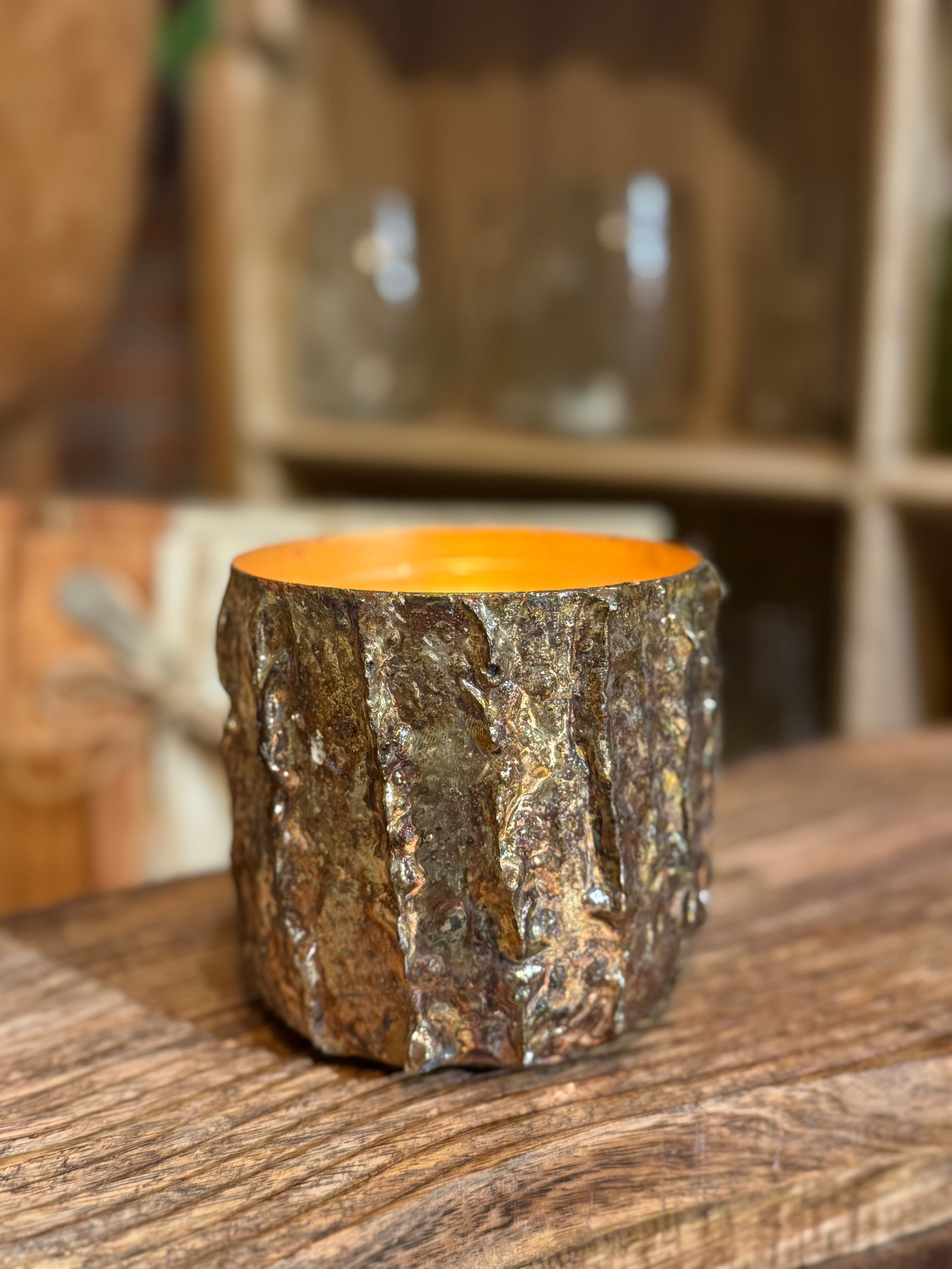Textured Metal Planters, Gold Finish (Holds 6" Pots)