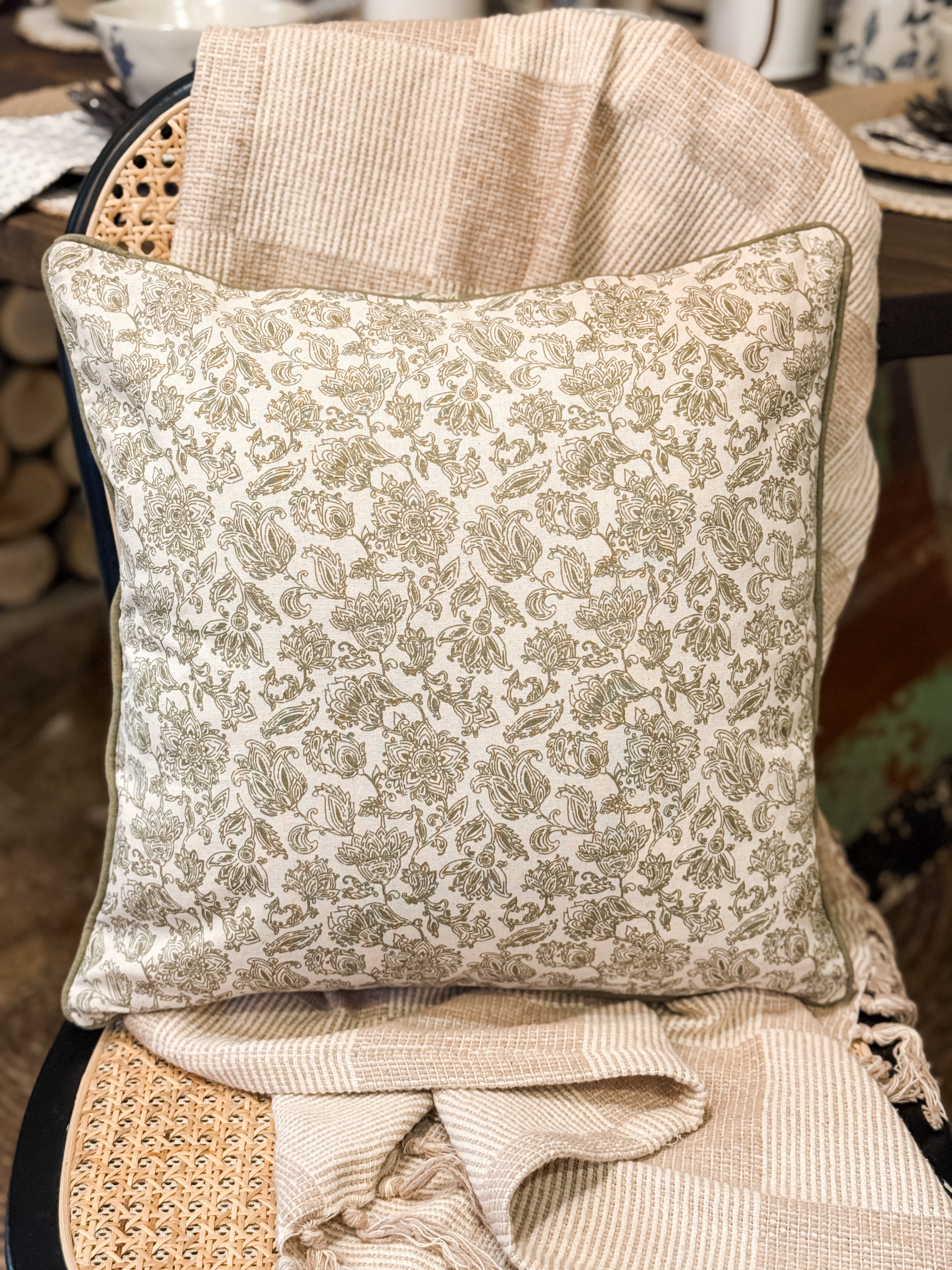 Bring two looks in one to your home with our 16" Reversible Green Floral Pillow. One side features a soft green floral pattern, while the reverse offers a coordinating design—giving you effortless styling versatility for your sofa, accent chair, or bed.