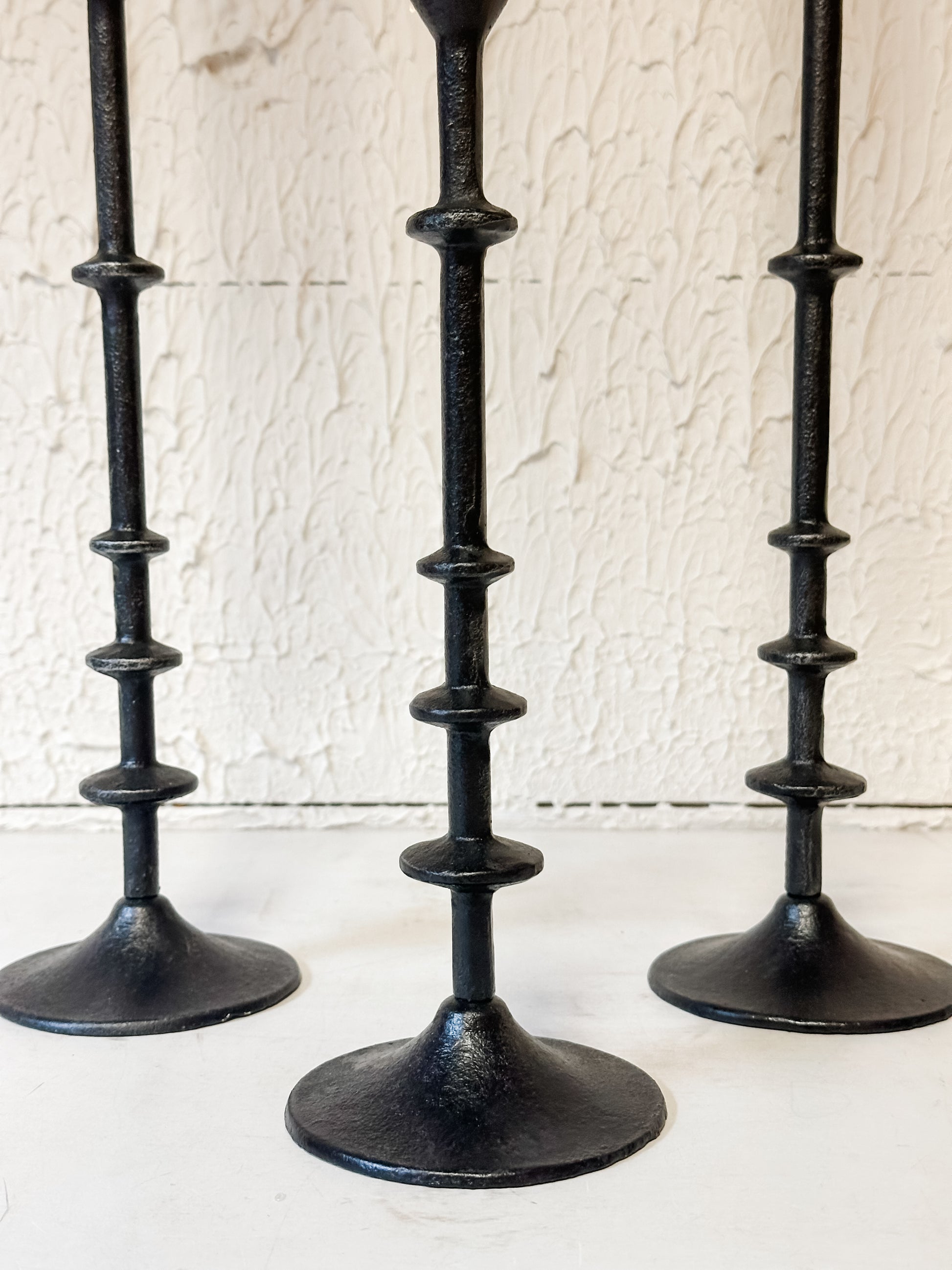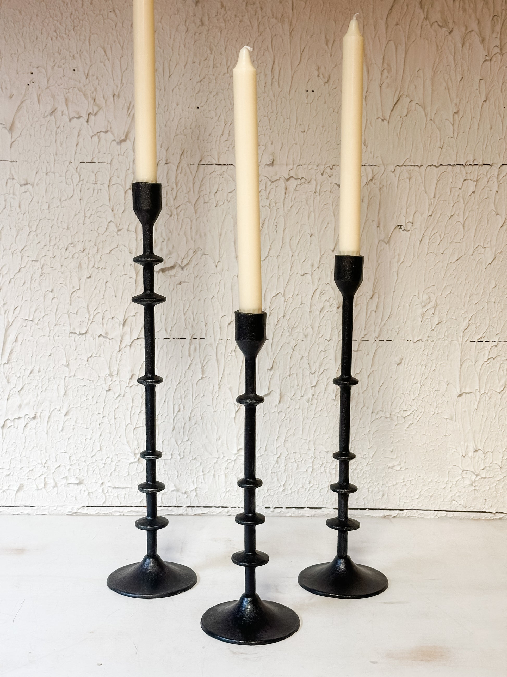 Elevate your candle game with these Black Iron Candle Taper Holders. Crafted from black iron, these holders are not only unique but also practical. Available in 3 sizes, they are perfect for adding a touch of sophistication to any room. Transform your space into a cozy oasis with these candle holders.