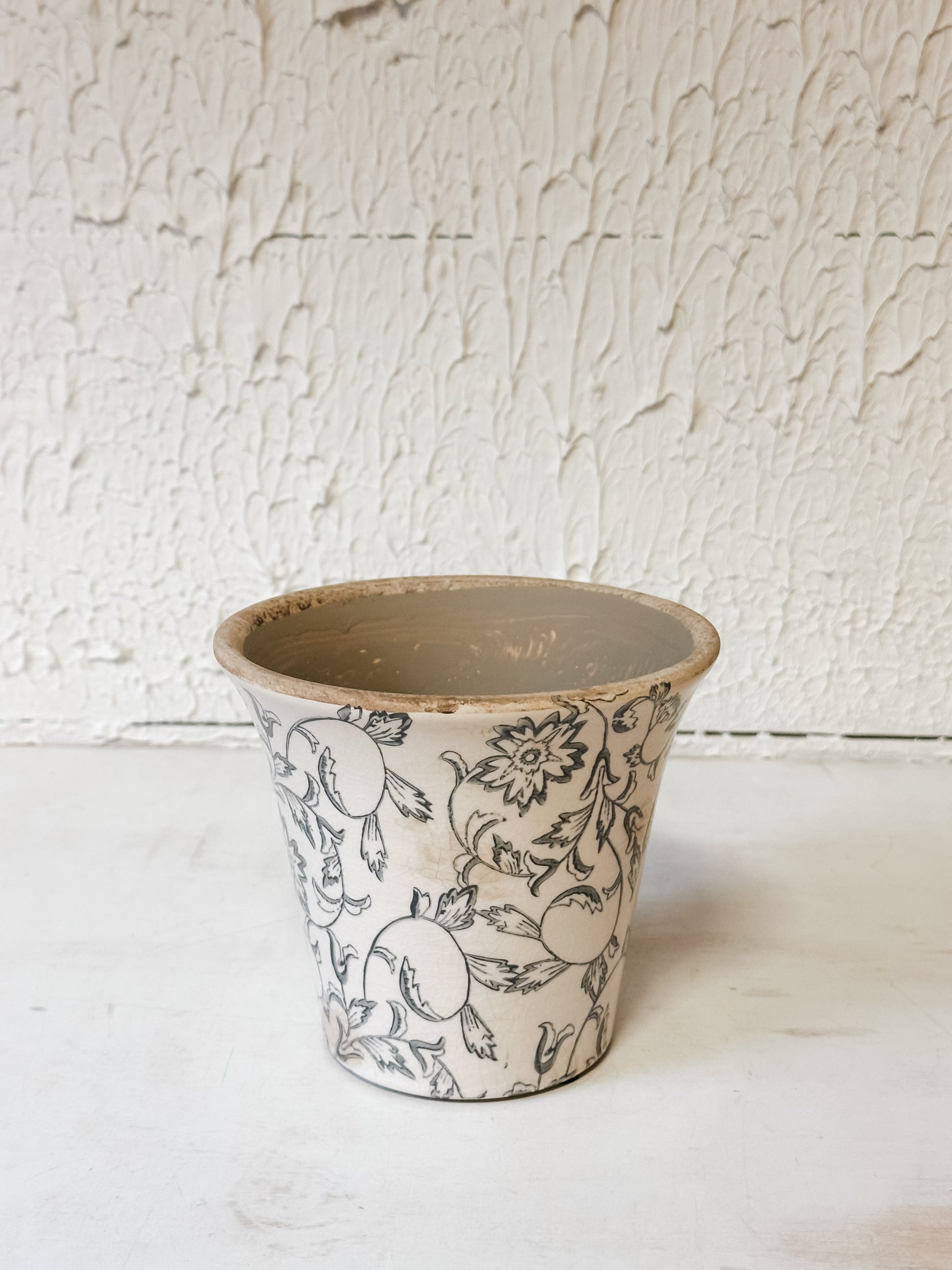 Some pieces just feel like they’ve been with you forever—in the best way. This 5" heirloom-style planter brings that feeling home. With a soft cream base, delicate charcoal grey floral detailing, and a vintage-inspired crackle finish, it’s the kind of piece that instantly adds charm, character, and a gentle story to your space.