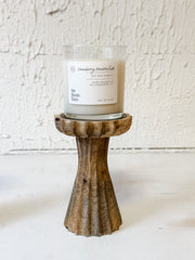 Elevate your candle game with our short fluted candle holder. Made of durable wood, it stands at 6 inches tall with a 4-inch diameter. Perfect for adding a touch of elegance to your home decor while keeping your candles securely in place.