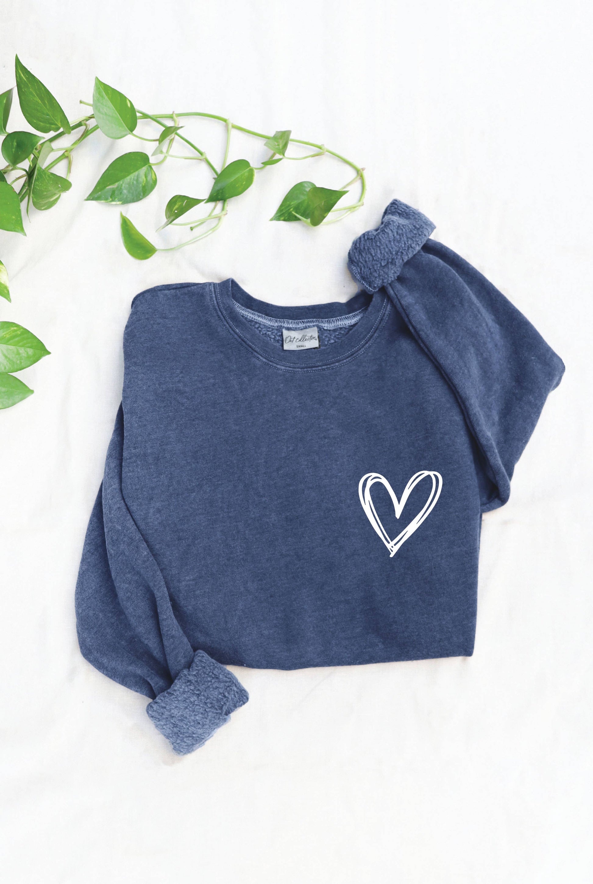 Cozy, soft, and perfectly lived-in — our HEART Mineral Washed Sweatshirt is the new everyday favorite. Spun from plush sponge fleece, this pullover has that comfort-first feel with a relaxed unisex fit that lays just right. Each piece is uniquely mineral washed, giving it a one-of-a-kind worn-in look… no two are exactly alike. 🤍