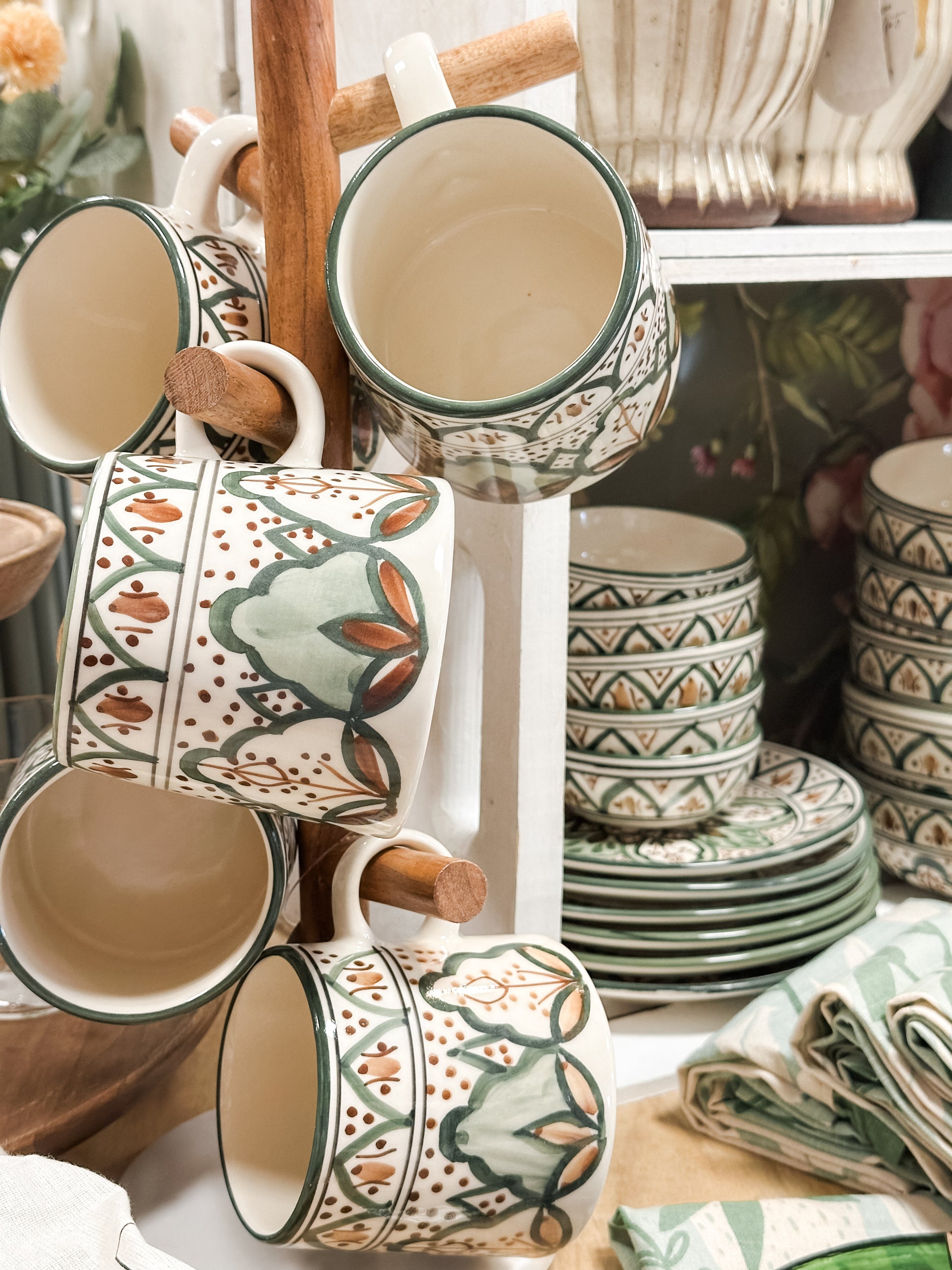 This artisan-style ceramic mug brings rustic elegance to your morning ritual and pairs beautifully with farmhouse or cottage-inspired kitchen décor. Whether you're sipping solo or serving guests, it’s a mug that feels as special as the moment.