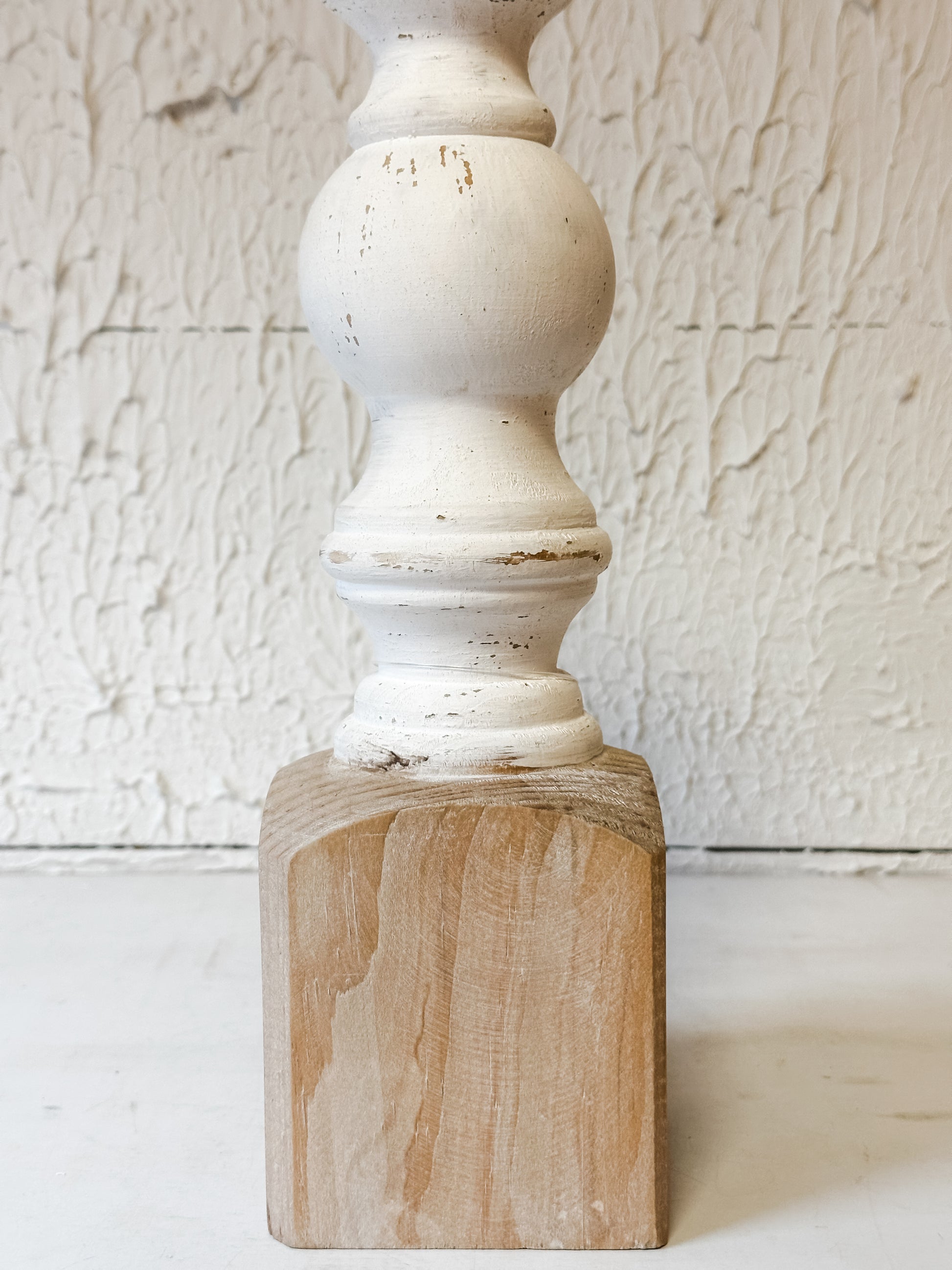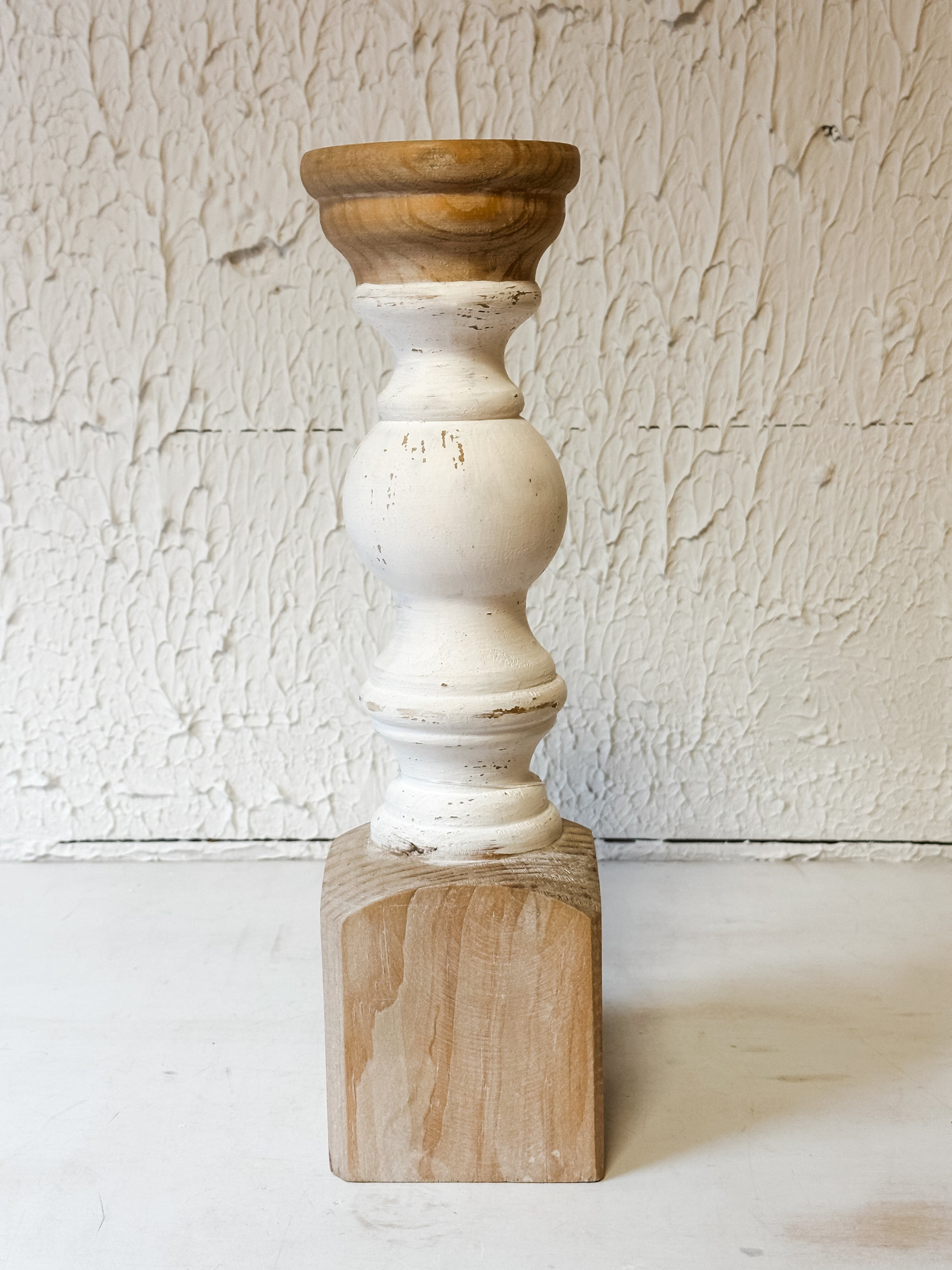 Add a touch of rustic charm to your home with our 14" white distressed candle pillar holder. Crafted from durable wood and finished with a timeworn, chippy paint effect, this piece brings that cozy farmhouse feel to any tabletop, mantel, or entryway display. The gently weathered white finish adds vintage character while complementing both modern and traditional décor styles.